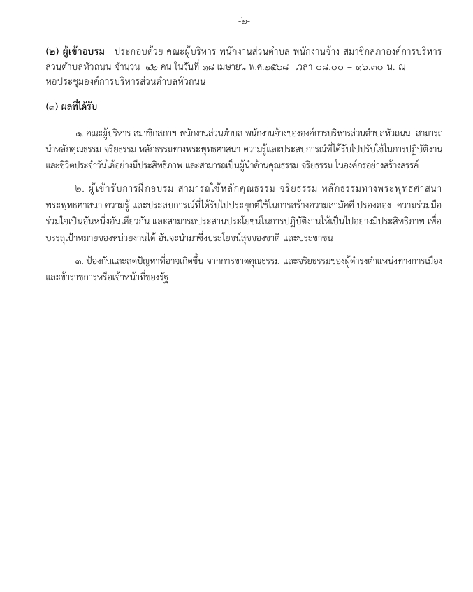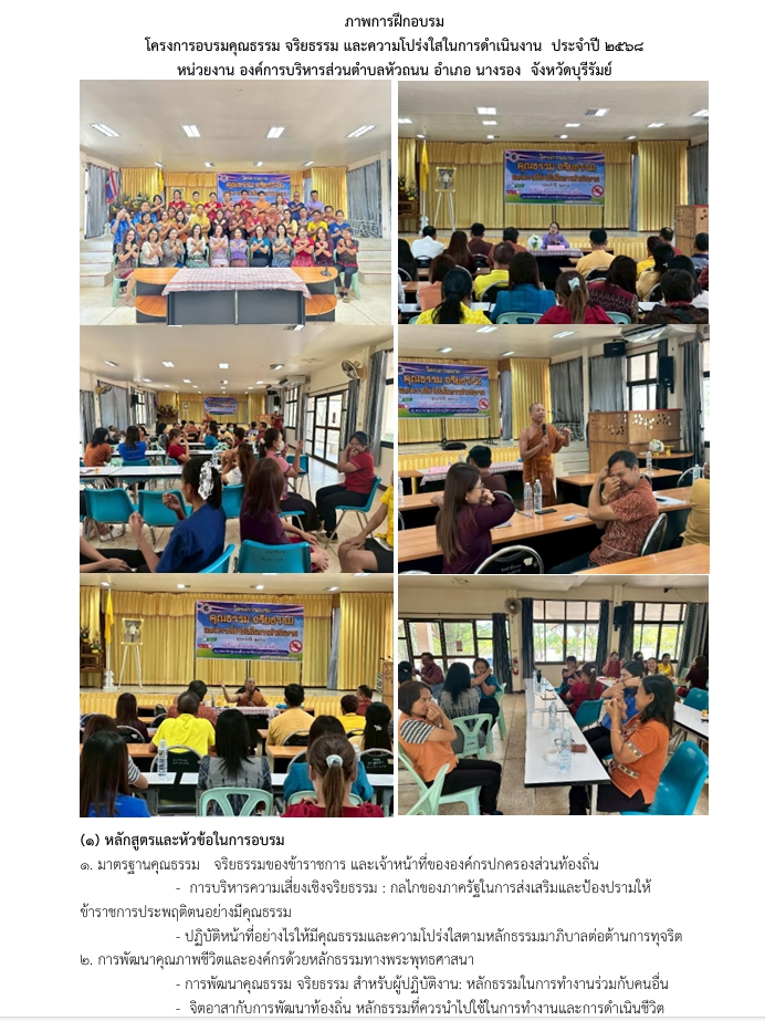 โครงการอบรมคุณธรรม จริยธรรม และความโปร่งใสในการดำเนินงาน ประจำปี 2568